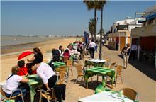 Le vent frais vient de l’Atlantique, la lumière est belle sur la Costa de la Luz.Dans les restaurants au bord de l’eau on déguste